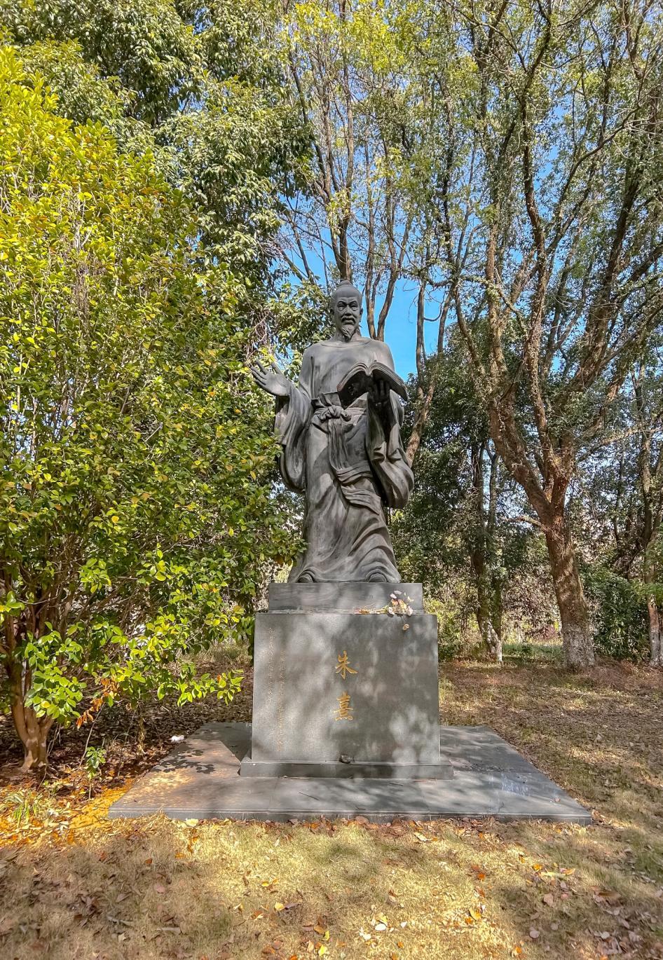 文法楼前,我看到朱熹雕像静立于林中,他微蹙的眉宇间,是八百年不变的思考。他力倡“格物致知”,而南昌大学校训中的“格物致新”与之一脉相承,又在新时代焕发出新的生命力。每一次驻足于此,都肃然起敬,生发对知识和真理的尊崇之情。