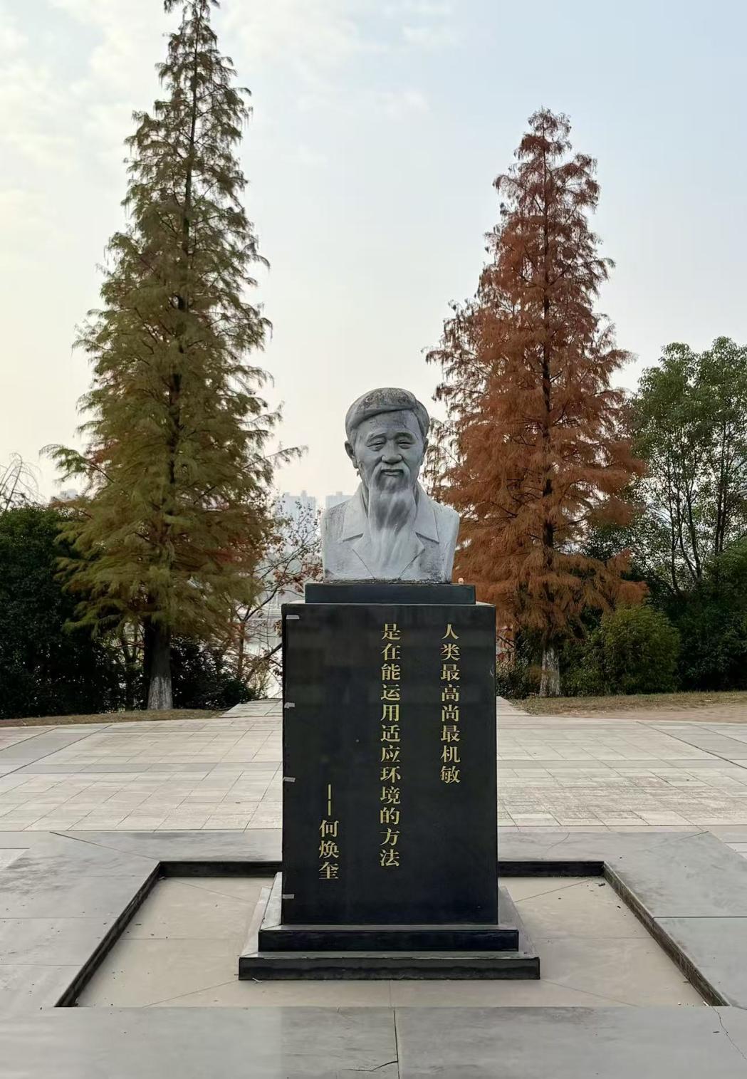 行至前湖南院的湖畔,我看到何焕奎先生的雕像。这位南大医学教育的重要奠基人,目光沉静而深远,仿佛仍在关切着医学教育的发展。在这里,湖光与雕像相映,恰如医学的理性与温度,共同滋养着南大医学人的精神家园。