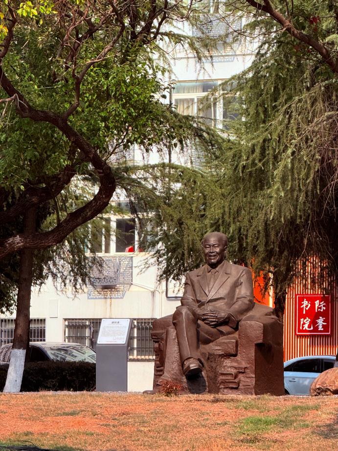 步入际銮书院,潘际銮院士的铜像静静地守望着这片学术殿堂。作为我国焊接工程领域的奠基人之一,他的一生是对“工匠精神”与“创新报国”的最好诠释。我立于像前,仿佛能感受到他身上那股坚韧与智慧,他激励着后来的学子勇于探索、敢于创新,将论文写在祖国的大地上。
