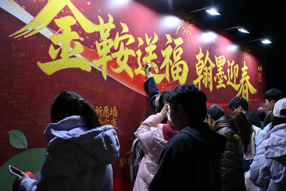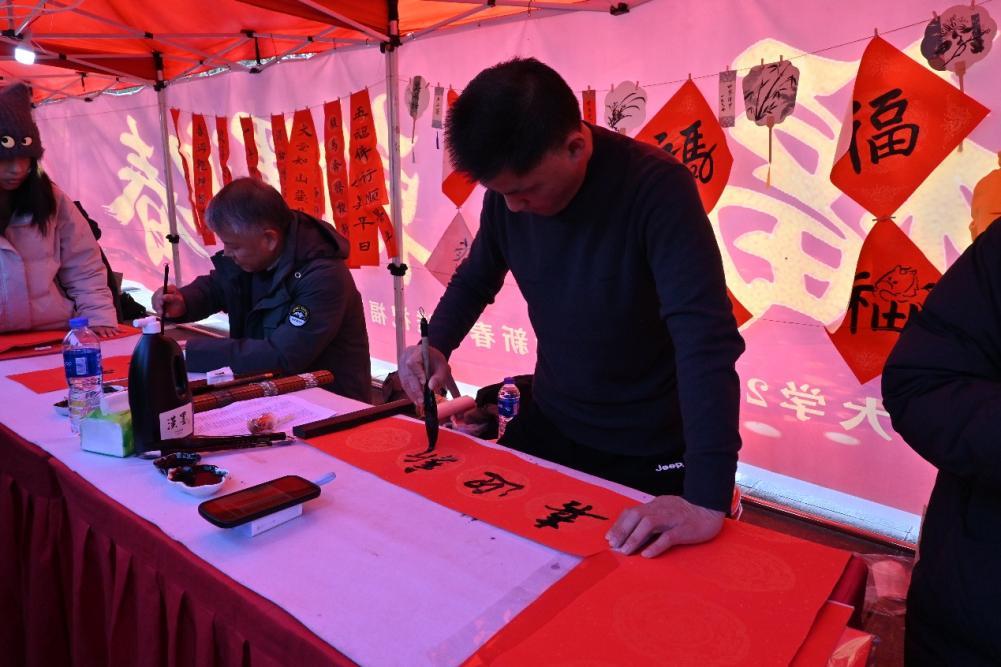 本网讯(学生记者弓欣怡)金鞍送福,翰墨迎春。12月29日下午,南昌大学2026年“迎新春·送祝福”活动在体育馆前举行。