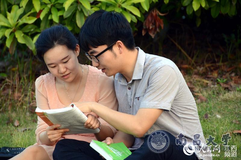 在南昌大学,除了这间保研寝室让同学们羡慕外,还有一对情侣学霸也成为大家学习的榜样。来自河南的程玺龙和来自黑龙江的朗欣宇2014年进入南昌大学成为同班同学。在大一下学期快结束的时候,他们互生情愫;大二开始后,爱学习的两个人成为了情侣。