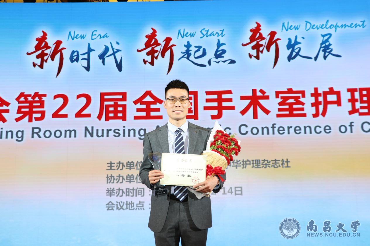 晏园生赛前精神饱满、信心十足,比赛过程中思路清晰,环节紧凑,重难点突出,设计合理,特别是课件中精彩绝伦的手绘图与催人泪下的感人故事让大家赞叹不已,再加上他行云流水、声情并茂的表达,赢得现场雷鸣般的掌声。最终他以优异的成绩荣获“全国手术室护理实践指南授课决赛”冠军。