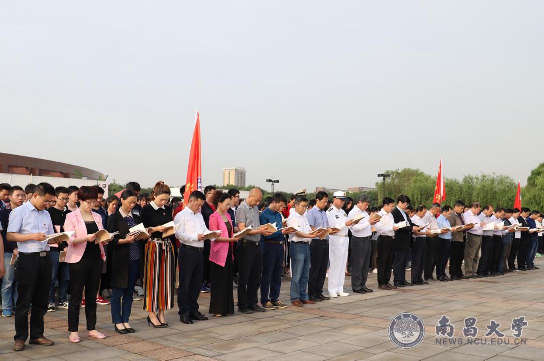中国江西网讯 郑胜水报道:5月4日清晨,南昌大学在前湖校区树人广场举行纪念五四运动99周年升国旗仪式暨“国旗下的诵读”活动。校党委书记喻晓社、副书记黄恩华、江西发展研究院院长黄细嘉及2000余名师生参加活动。