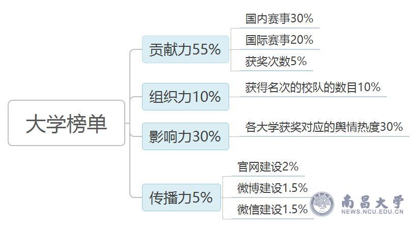 日前,“2017中国高校体育竞赛榜”正式发布。榜单由人民体育和人民网舆情数据中心共同推出、中国大学生体育协会提供数据支持。榜单延续了2016年的榜单评估标准,从贡献力、组织力、传播力和影响力四个维度进行评估排名,共有631所高校入围。南昌大学名列全国第37!