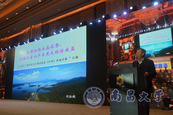 胡振鹏作报告,题为“让绿水青山产生更大的效益”