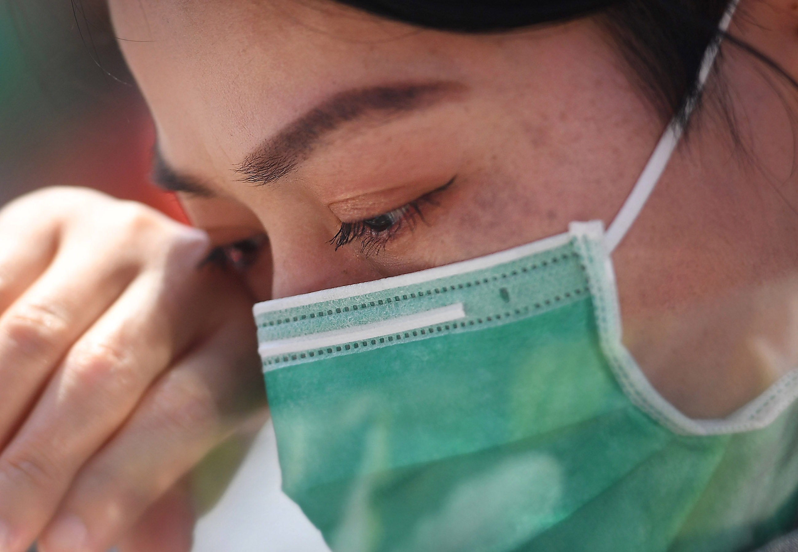 4月15日,在南昌大学一附院象湖院区,一名医疗队员在欢迎仪式上落泪。