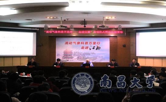 3月19日上午,由中国气象局办公室主办、南昌大学协办的“流动气象科普万里行——走进江西”启动仪式在南昌大学举行。中国工程院院士李泽椿、江西省气象台台长殷剑敏分别作专题报告。中国气象局气象宣传与科普中心副主任陈云峰、江西省气象局副局长吴万友、江西省科协副主席梁纯平、南昌大学副校长朱小理出席启动仪式并致辞,