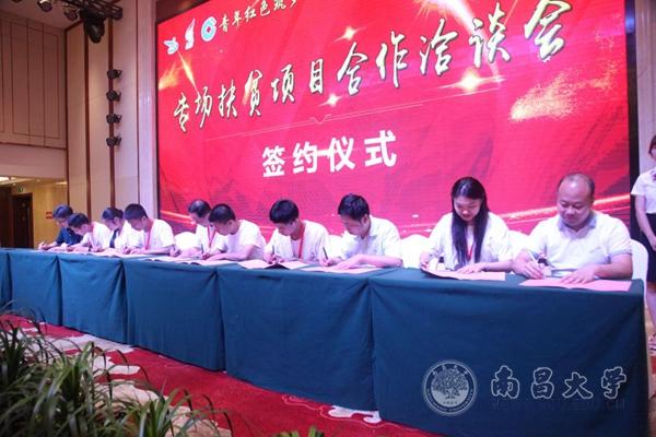 本次专场扶贫项目合作洽谈会上,北京大学《众维健康互联网+基本公共卫生》、南方科技大学《众康饮——健康中国“饮”领者》、南昌大学《稻渔工程:产业扶贫排头兵》等三个帮扶项目进行了路演展示,共有22个合作项目现场签约。
