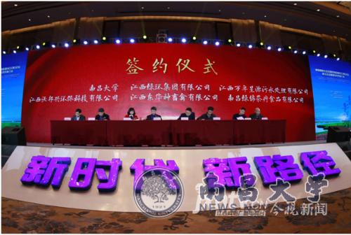 推介会现场,抚州市东乡区区政府、江西赣皖环保科技有限公司、江西省新远健药业有限公司、江西融汇环保技术有限公司、南昌市山江湖湿地景观建设有限公司、江西绿环集团、江西万年星源污水处理有限公司、江西东华种畜禽有限公司、南昌绿锦茶疗食品有限公司分别与南昌大学签署战略合作框架协议、产学研合作协议、技术转让协议等9项合同,签约金额近4亿元人民币。