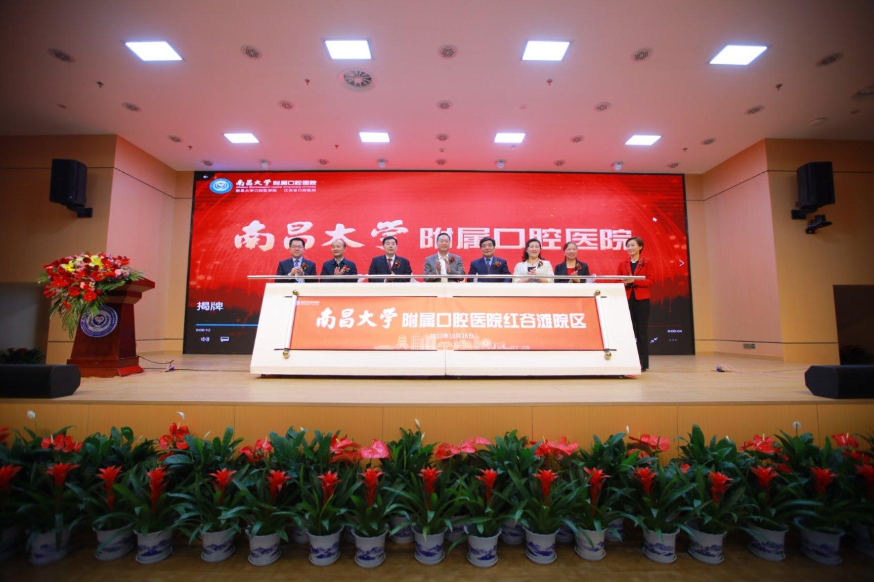 本网讯(附属口腔医院 陈尚文)10月26日,南昌大学附属口腔医院红谷滩院区举行试运行启动仪式。江西省卫健委党组成员、一级巡视员曾传美,南昌大学校长周创兵出席仪式并讲话。我校副校长邓晓华、正厅级干部徐求真,井冈山大学副校长廖岚出席仪式。南昌大学附属口腔医院党委书记周婷致辞,院长杨健主持仪式。
