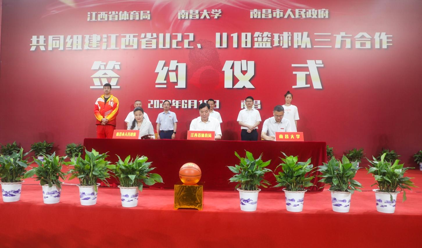 本网讯(综合中新网)6月18日,江西省体育局和南昌大学、南昌市人民政府共同组建江西省U系列专业篮球队三方合作签约仪式在我校体育馆举行。三方签署框架协议书,“省队市办”“省队校办”,合作共建江西省U系列篮球队。这填补了江西近30年来没有专业篮球队的空白,是江西体育特别是“三大球”改革发展的重要里程碑。