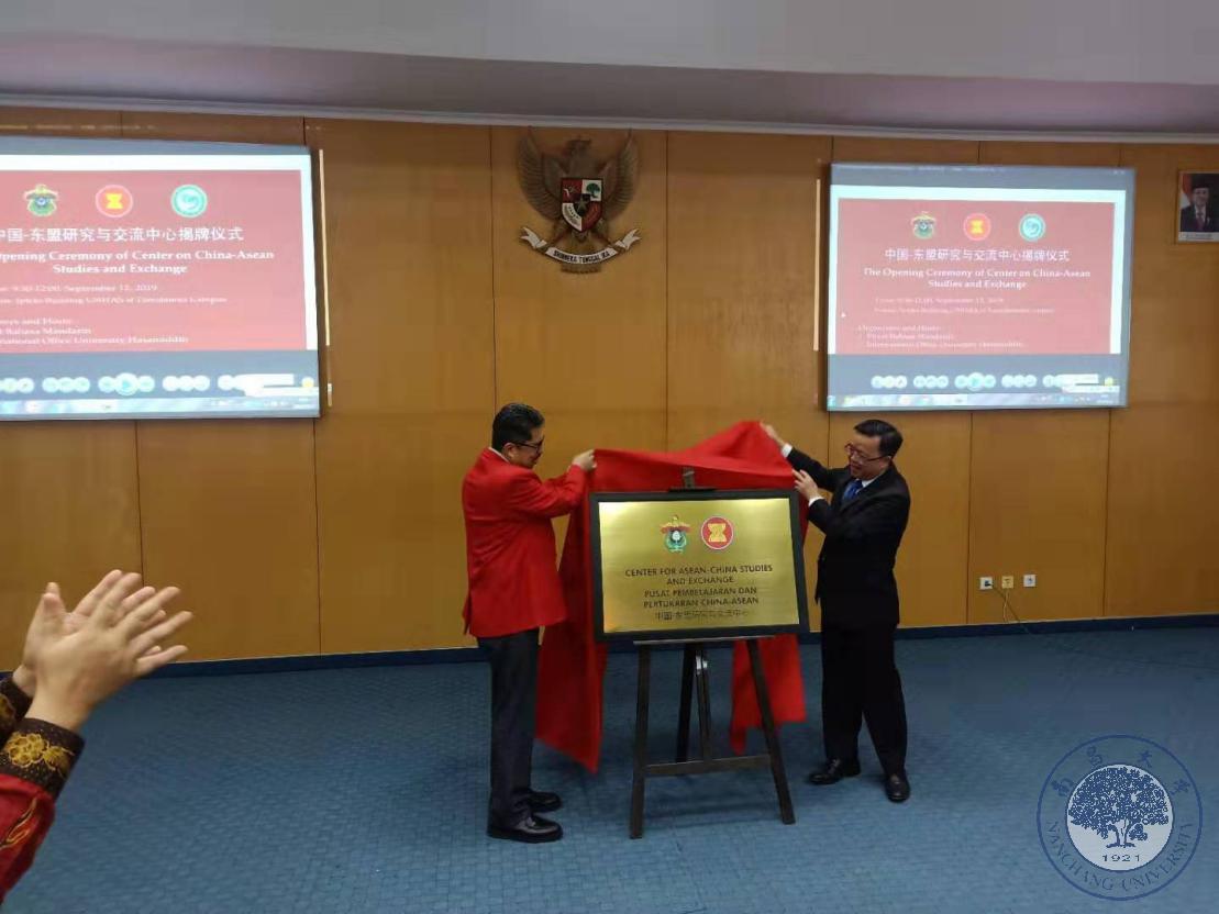 本网讯(国际事务部)2019年9月12日,由我校承办的哈山努丁大学孔子学院积极推进建设的“中国-东盟研究交流中心”举行揭牌仪式。中国驻东盟使团黄溪连大使一行出席了仪式,哈山努丁大学副校长穆罕默德·李思杜(Muhannad Restu)及其他有关校领导、哈山努丁大学孔子学院中外方院长、锡江当地汉语教师、哈山努丁大学文学院、国际关系学院学生,以及当地华人华侨代表200多人参加了仪式。