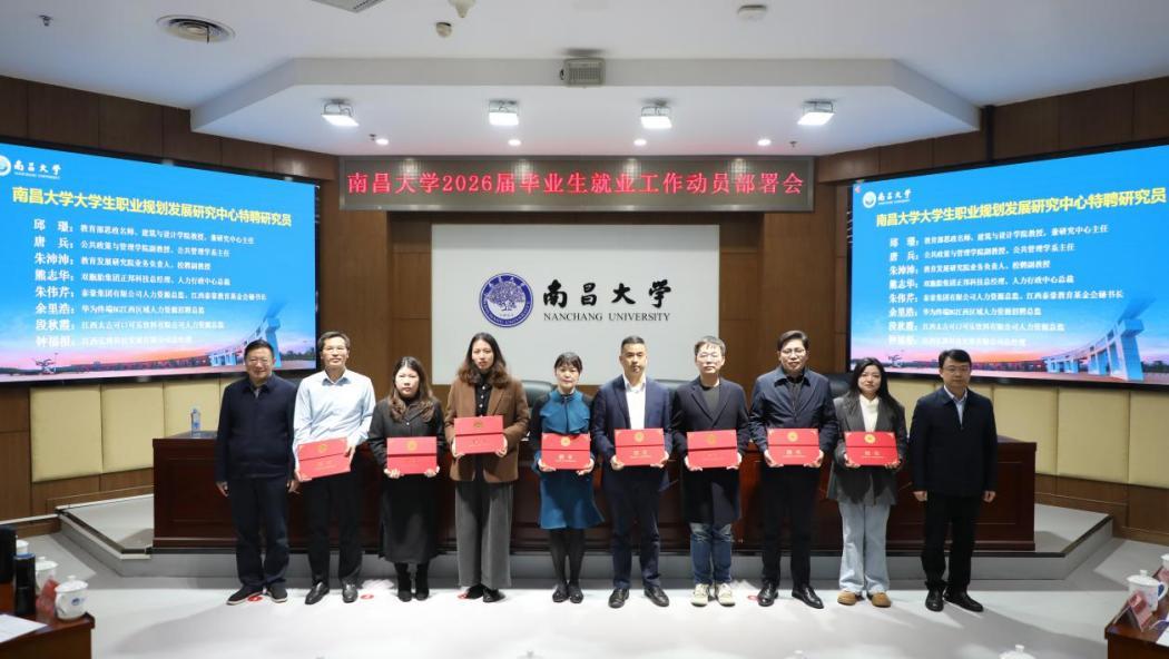 会议还举行了大学生职业规划发展研究中心首批特聘研究员授聘仪式,3位校内专家和5位企业资深人力资源高管获颁聘书。各学院主要负责人、分管就业工作负责人、相关单位负责人参加会议。