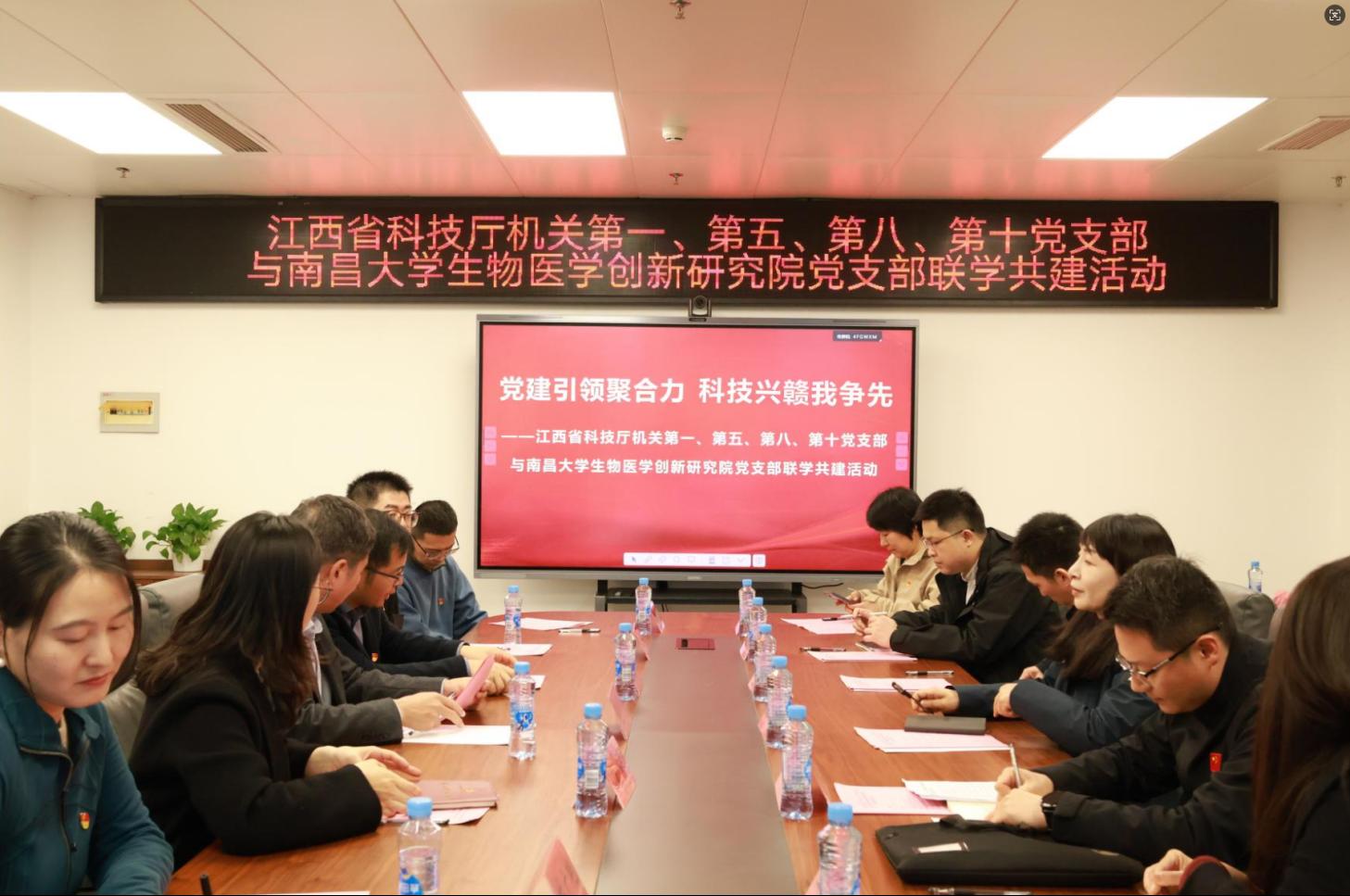 本网讯(生物医学创新研究院)4月3日,省科技厅机关第一、第五、第八、第十党支部与南昌大学生物医学创新研究院党支部联合开展联学共建活动。省科技厅党组成员、副厅长陈炜蓉,我校副校长潘秉兴出席活动。