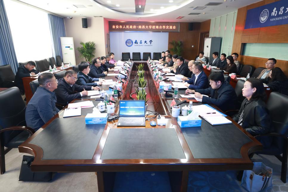 本网讯(学生记者边宇童)11月13日下午,南昌大学与吉安市校地合作交流会在办公楼举行,校地双方代表齐聚一堂,共商合作路径。校党委书记罗嗣海,吉安市委副书记、市长王亚联,副市长周密出席座谈会。我校学术副校长马帅主持会议。