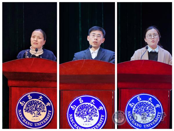 师生在集体观看《用生命诠释海归学者的时代担当》主题宣传视频后,材料科学与工程学院副院长陈建琴、人文学院副院长罗剑、材料科学与工程学院硕士研究生张蓉等3名报告团成员,结合个人经历、学习体会从仁者情怀、超然情怀、师者情怀等三个角度生动诠释了王雨教授的“三爱”精神与无私奉献的高尚情怀。