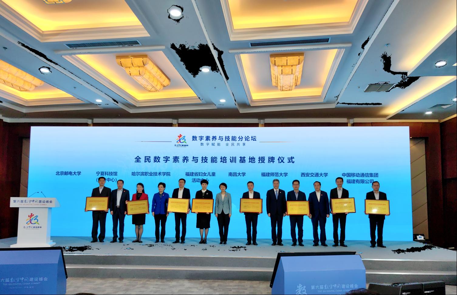 本网讯(发展规划与学科建设处)4月27日,第六届数字中国建设峰会在福州开幕。副校长吴丹出席会议并代表学校接受国家全民数字素养与技能培训基地授牌。