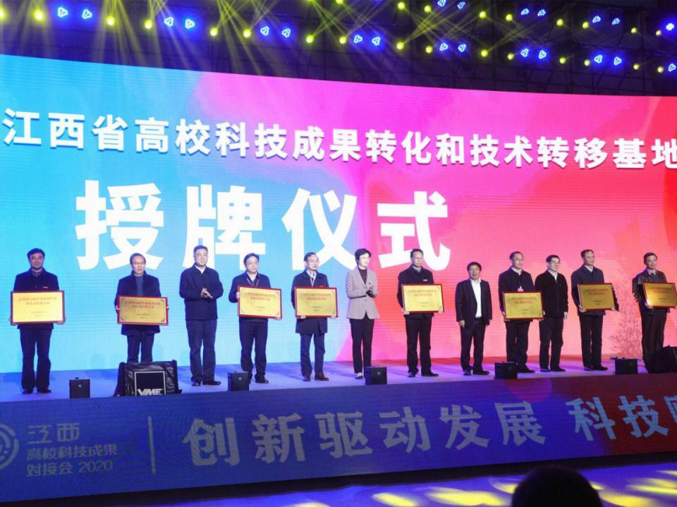 对接会上,省委常委、省委宣传部部长施小琳,省人大常委会党组副书记、副主任朱虹,省政府副省长孙菊生,省政协副主席汤建人等领导为包括我校在内的8所高校首批江西省高校科技成果转化和技术转移基地授牌。我校党委书记喻晓社上台受牌。