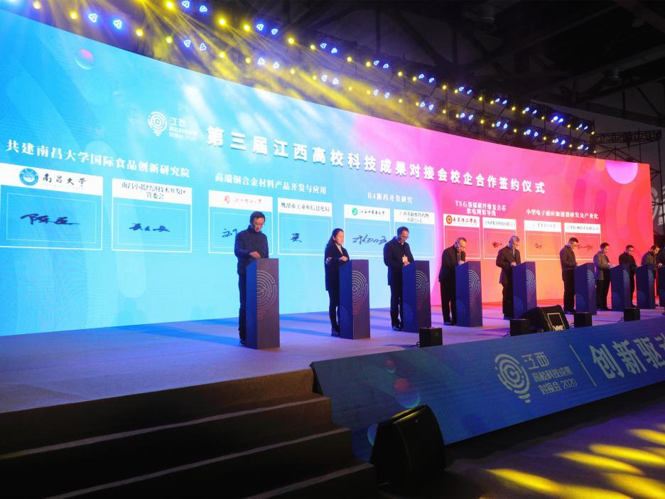 本网讯(通讯员高朝辉)12月11日,以“创新驱动发展 科技赋能产业”为主题的第三届江西省高校科技成果对接会在南昌开幕。对接会由教育部科技发展中心、江西省教育厅、江西省发展和改革委员会等12家单位共同主办。