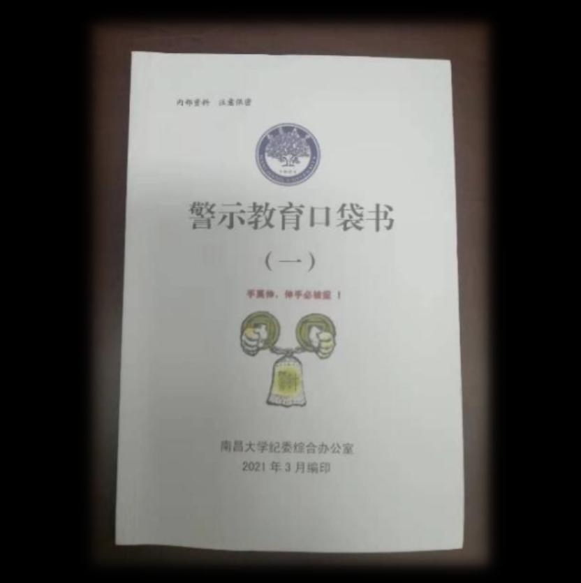 拒腐防变并非一日之功,警示教育还需久久为功、警钟长鸣。校纪委除了举办大型警示教育活动外,还协助校党委将经常性警示教育纳入《全面从严治党责任书》,与年度全面从严治党工作会议同部署、与党史学习教育相结合。用“身边事”教育警示“身边人”,会让受教育者产生代入感,会不自觉地紧张起来,进而反思“如果我是他,会选择走上怎样的道路?”校纪委紧抓受教育者的代入心理,梳理近年来校内发生的真实案例,编写《警示教育口袋书》,既如实呈现“身边人”的破防轨迹,又深刻剖析其违纪违法的原因,同时直指“身边事”暴露出的廉政风险点和监督管理工作中的薄弱环节,使每个案例都对单位有震动、对人员有触动、对工作有推动,真正起到警示教育作用。今年校纪委向处级以上干部及教工支部发放《口袋书》800余册,并要求列入各支部组织生活会和日常警示教育的重要内容,切实做到警示在前、教育在先。