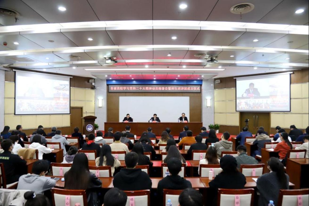 据了解,为深入学习宣传贯彻党的二十大精神,推进用习近平新时代中国特色社会主义思想凝心铸魂,省委教育工委、省教育厅已面向全省高校遴选出130多名优秀教师、80多名青年学生骨干,组建全省高校学习党的二十大精神师生巡讲团。