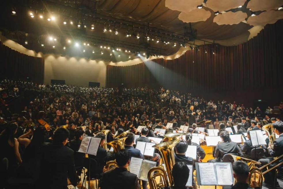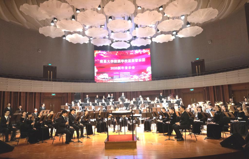 本网讯(附属学校 吴崇飞)1月17日晚,附属学校星辰管乐团2026新年音乐会在江西艺术中心音乐厅上演,以激昂乐声开启新年序章,以赤诚之心礼赞伟大时代。副校长葛刚,校党委常委刘建光,南昌市教育局局长黄琰、副局长田承新,共青团南昌市委、南昌大学团委、南昌市教育局有关科室、各县区教体局、市属和区属兄弟学校代表,附属学校师生代表700余人共同欣赏音乐会。