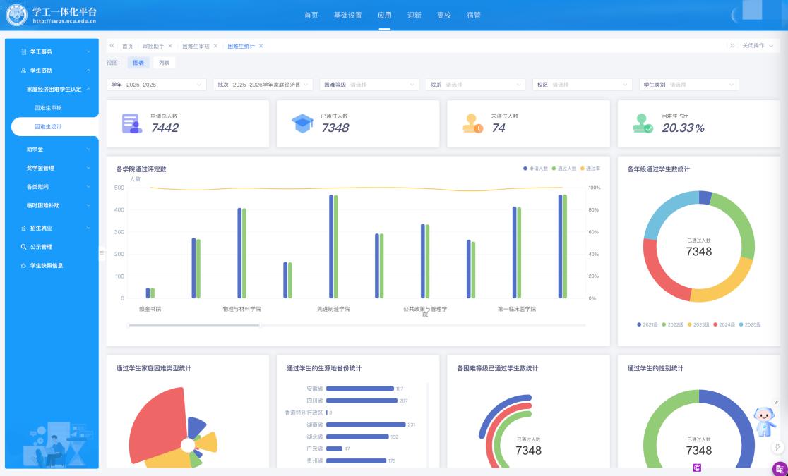 公平与精准,是学生资助工作的生命线。传统的资助模式往往依赖学生主动申请和纸质证明,不仅流程繁琐,更可能存在漏助或误助的风险。为此,学校将“学工一体化平台”打造为智慧中枢,致力于为每一份资助描绘出最精准的“数字画像”。