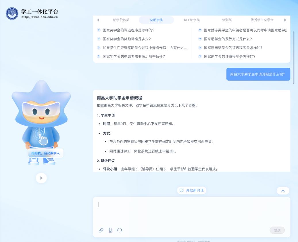 图:南昌大学“AI学伴”为学生提供各类智慧解答