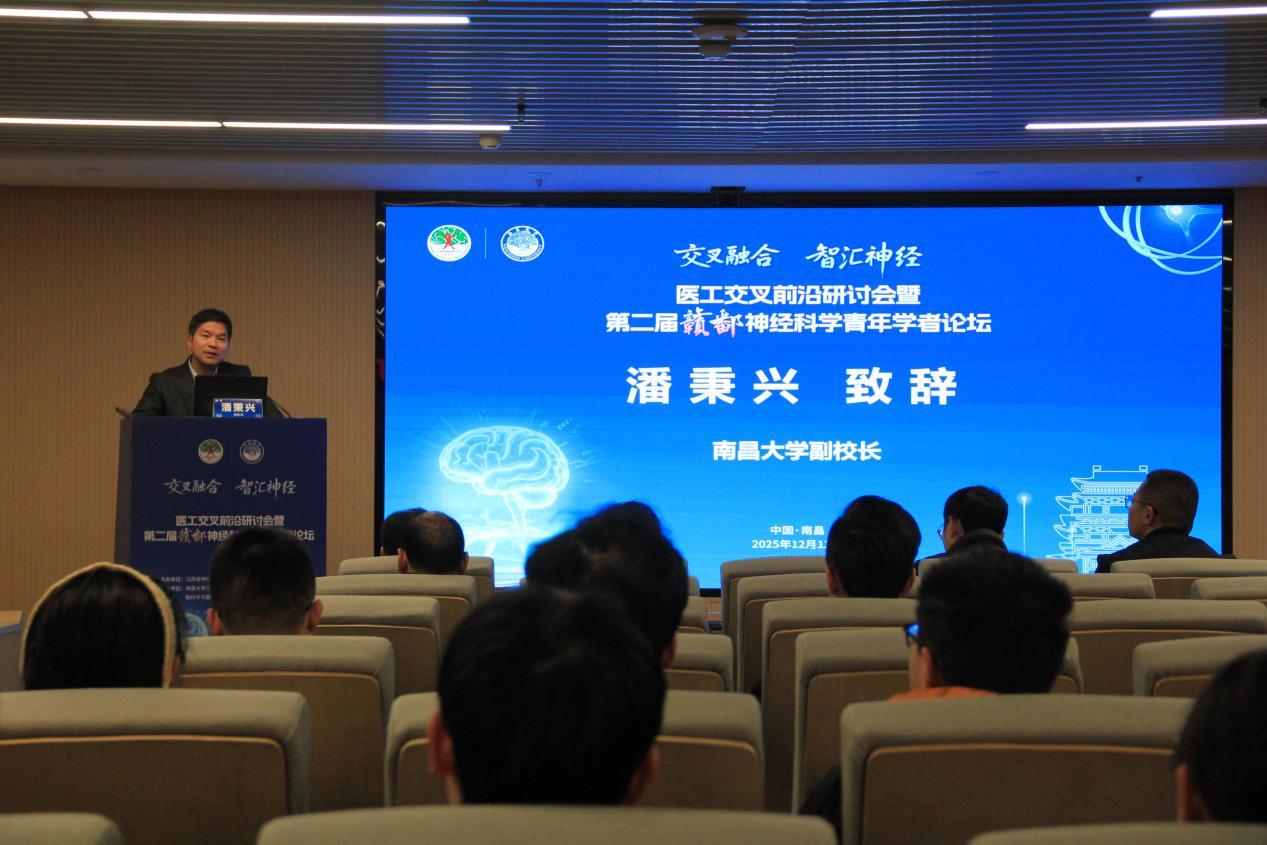 本网讯(生物医学创新研究院)12月13日,“交叉融合,智汇神经——医工交叉前沿研讨会暨第二届赣鄱神经科学青年学者论坛”召开。本次论坛以“医工交叉融合与神经科学前沿探索”为主题,汇聚了省内外神经科学、医学、工程学及人工智能等领域的众多知名专家与青年学者,共同探讨智能化时代神经科学的前沿发展与医工交叉的创新融合。副校长、生物医学创新研究院院长潘秉兴出席论坛并致辞。