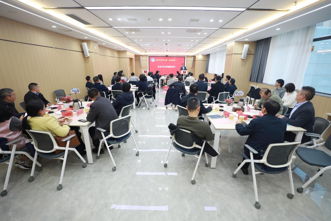 罗嗣海认真听取大家的发言,并到各组开展交流,最后作总结讲话。他指出,书记沙龙是学校的一项品牌活动,本次沙龙组织精细、形式新颖、成效明显,希望各位书记深化认识、启迪思路、汲取经验,持续加强党建引领,进一步凝聚共识、汇聚力量,展现更大作为。近年来学校各项事业快速发展,成绩令人鼓舞。面对新形势、新任务,必须主动转变工作思路,明晰发展定位,找准实施路径;持续健全体制机制,提升治理效能;充分激发教职工内生动力,凝聚推动学校发展的强大合力。