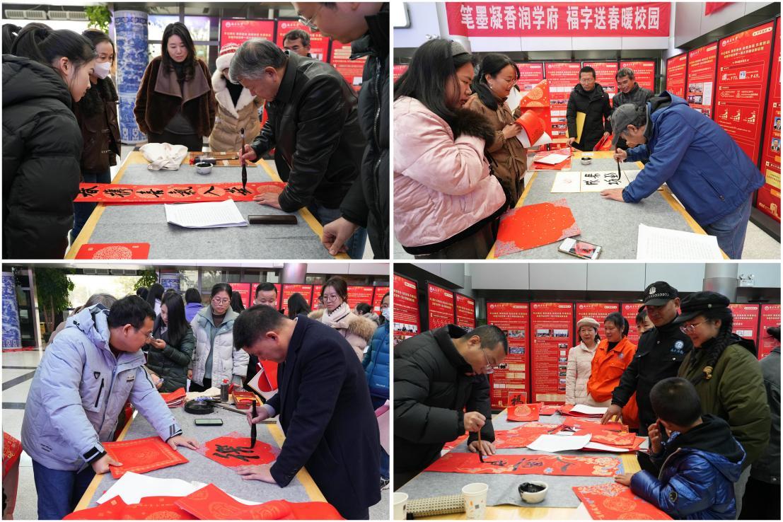 春联承载着中华优秀传统文化与新年祥瑞的期盼。此次活动由校工会主办、教职工书画协会承办,旨在弘扬中华优秀传统文化,营造欢乐祥和的校园新春氛围,向全体教职工致以诚挚的新年问候,引导教职工亲身体悟传统文化,增强文化自信,以饱满的热情和坚定的信心投入工作,共同推动学校高质量发展,喜迎新春佳节。