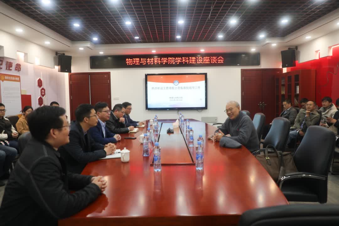 王恩哥深入物理与材料学院与骨干教师代表围绕学科建设座谈交流。在座谈会上,王恩哥听取了学院的学科建设情况,并重点就有组织科研活动的开展等学科建设相关问题与教师代表进行交流。在交流过程中,王恩哥畅谈了他与科研团队开展科研攻关的切身经历,并勉励广大教师秉承坚守科研、竭力创新的学术精神,共同为推动物理学科发展贡献力量。王恩哥还参观了校史馆,详细了解了南昌大学的历史沿革和办学历程。