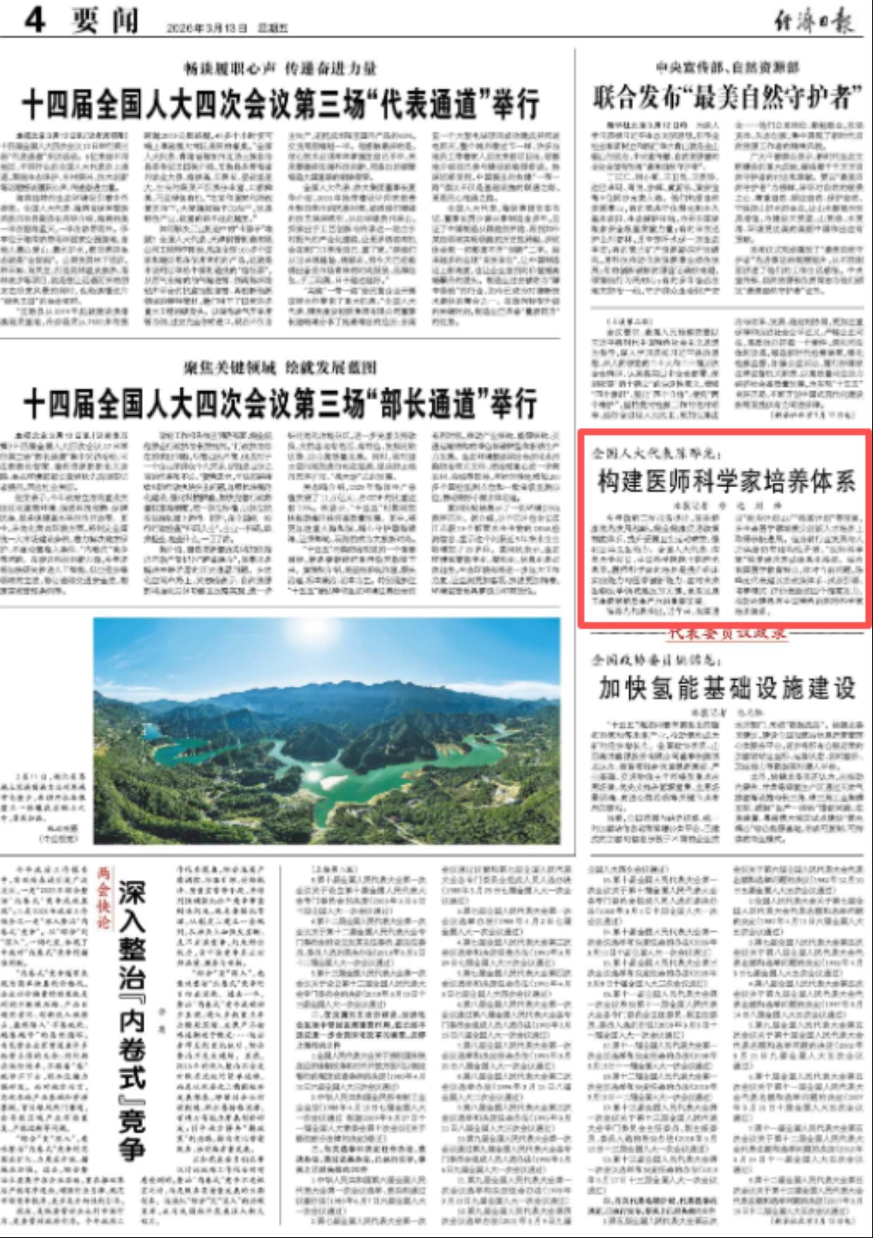 编者按:3月13日,《经济日报》以《全国人大代表陈晔光:构建医师科学家培养体系》为题,刊发全国人大代表、南昌大学校长陈晔光院士提出在政策体系、试点引领、培养模式、评价激励等维度发力,推动构建具有中国特色的医师科学家培养体系的建议。详情如下: