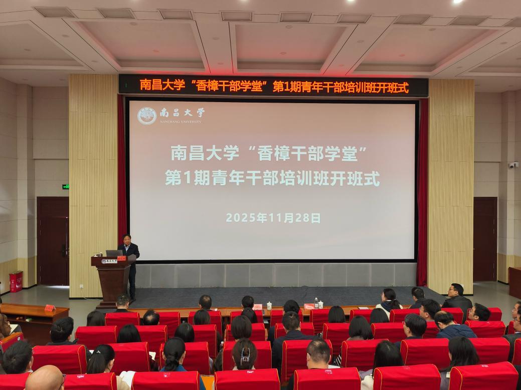 本网讯(党委组织部)11月28日,南昌大学“香樟干部学堂”第一期青年干部培训班开班式在慧源楼举行。副校长陈始发出席会议并作开班讲话,校党委常委、组织部部长刘建光主持会议,39名青年干部参加培训。