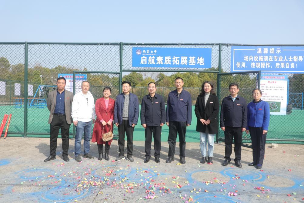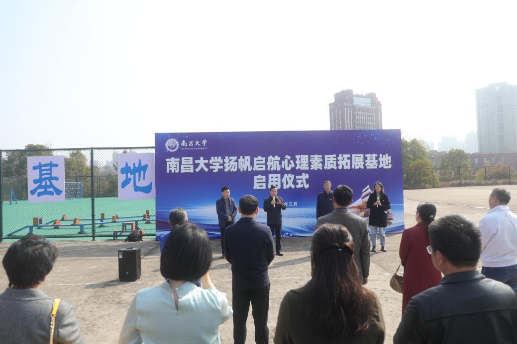 本网讯(南轩)3月9日下午,南昌大学“扬帆”“启航”心理素质拓展基地启用仪式在前湖南院运动场举行。校党委书记喻晓社、副校长刘耀彬分别致辞,共同为启航素质拓展基地揭幕,并现场参观基地。