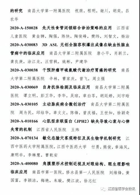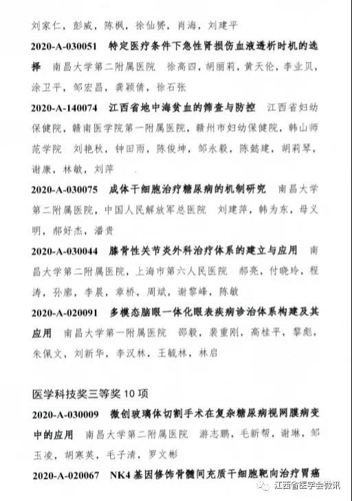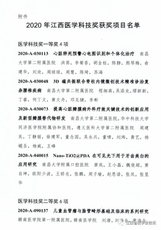 本网讯(南轩)近日,江西省医学会下发了《关于2020年江西医学科技奖奖励的决定》,我校附属医院包揽一等奖全部4个奖项。