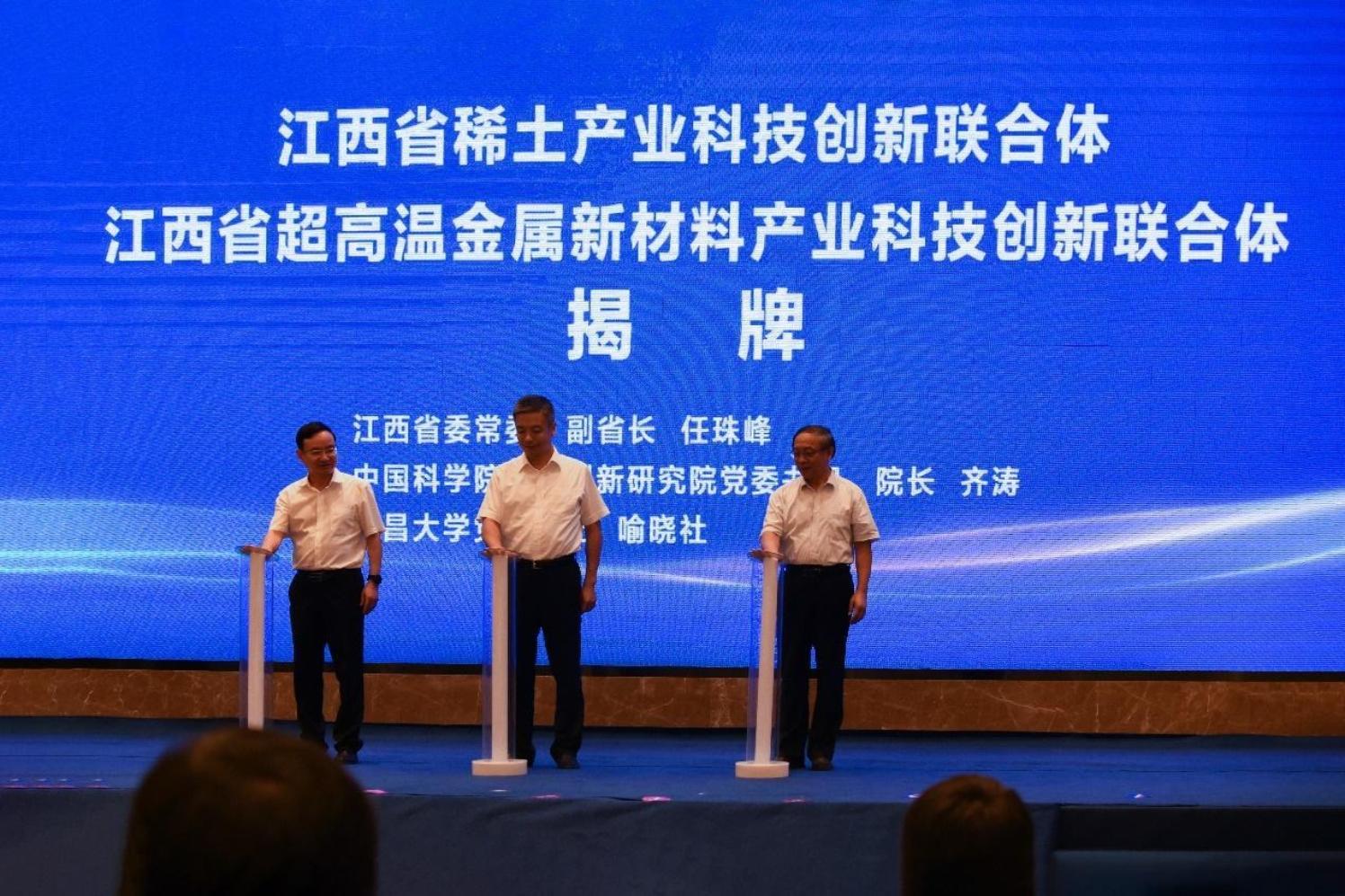 会议举行了江西省超高温金属新材料产业科技创新联合体、稀土产业科技创新联合体揭牌仪式。任珠峰、齐涛、喻晓社共同为科技创新联合体揭牌。犹宣读了科技创新联合体组建通知。