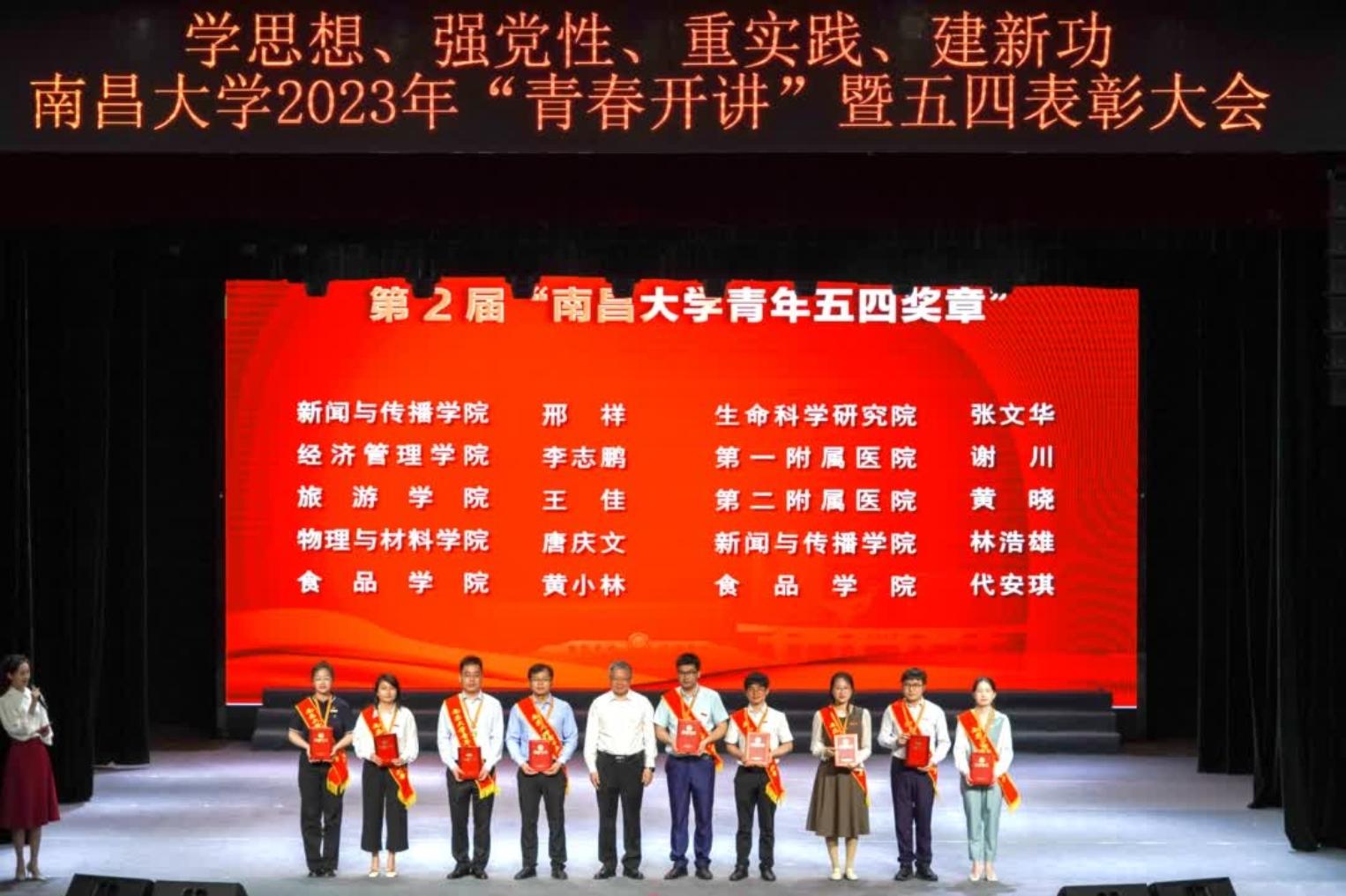 在五四表彰环节,大会颁发了第二届“南昌大学青年五四奖章”,2022年度南昌大学优秀共青团员、优秀共青团干部、五四红旗团支部、青年岗位能手、优秀共青团干部标兵、先进学院学生会、共青团工作先进单位等奖项。