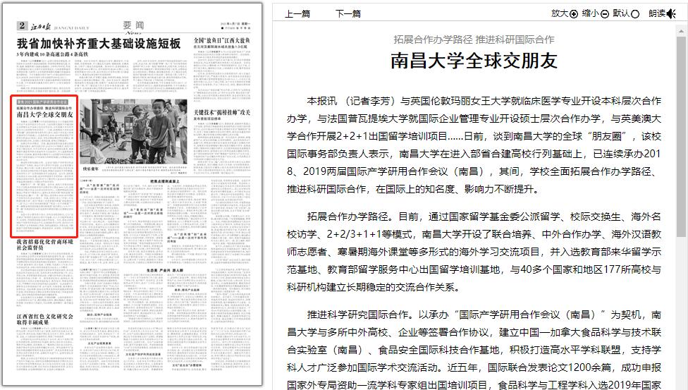 编者按:6月7日,江西日报以《南昌大学全球交朋友》为题,报道我校在对外交流、合作办学、“一带一路”建设中的举措与成效。
