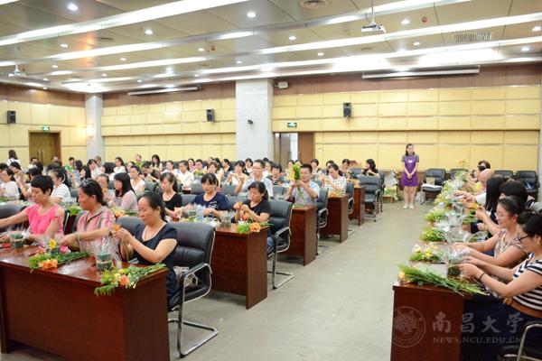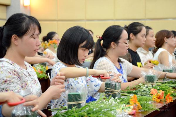 本网讯(学生记者许建文) 金秋送爽,丹桂飘香。为喜迎国庆,丰富教职工文化生活,9月27日下午,机关党委在办公楼二楼学术报告厅举办了插花艺术学习与欣赏活动。校纪委书记黄云,机关及部分学院教职工等100余人参加了此次活动。