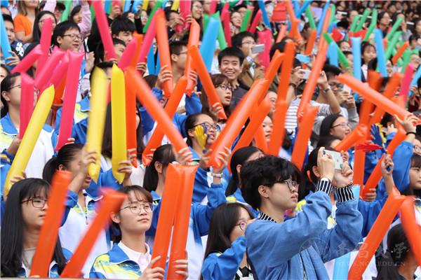 手中的加油棒,挥舞着激扬的青春;高举的双手,传递着期盼与祝福。