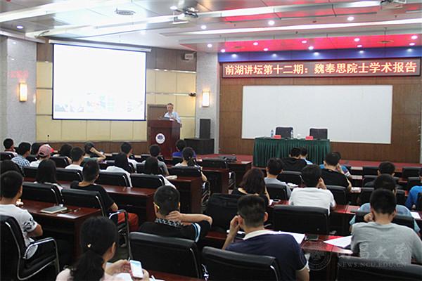 本网讯(记者曹坤)6月15日下午,中国科学院院士魏奉思来校做客前湖讲坛第十二期,与我校百余名师生畅谈空间天气战略研究的机遇与挑战。副校长邓晓华主持报告。
