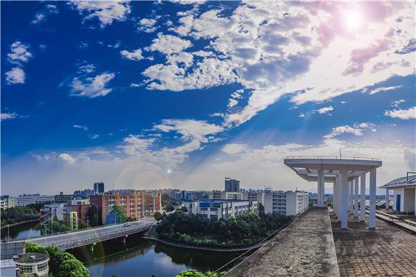 “白云升远岫,摇曳入晴空。”阳光披洒在这片校园,白云做你的衣裳,天空负责点缀蓝。