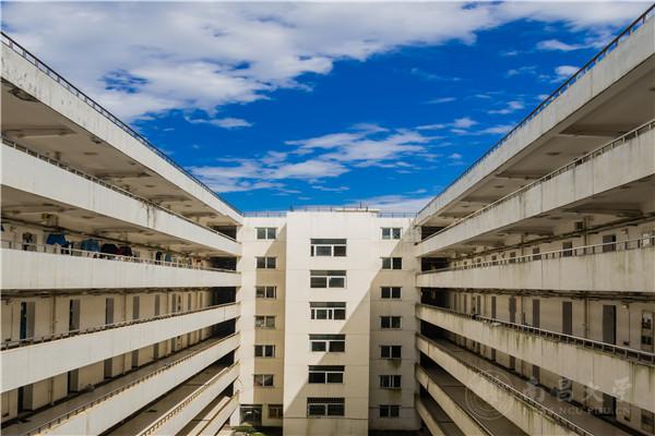 “上有蔚蓝天,垂光抱琼台。”这个秋日,宿舍楼天井上方,晴空正好。