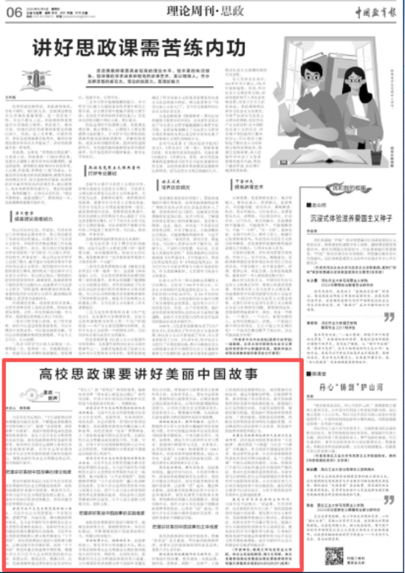 编者按:12月4日,《中国教育报》以《高校思政课要讲好美丽中国故事》为题,刊登我校马克思主义学院钟贞山、杨丽娜撰写的理论文章。详情如下:
