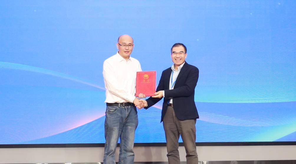 陈晔光为马帅颁发人工智能学院院长聘书。
