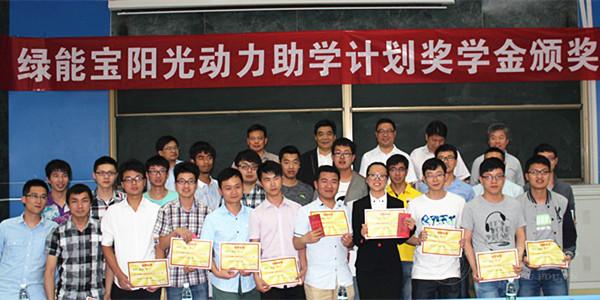 “阳光动力助学计划”是我校与阳光动力集团2015年10月签署协议而设立的。根据《绿能宝阳光动力助学计划奖励人员遴选章程》,学校共评选出“2015年度阳光动力奖学金”获得者14名(本科生),每人2000元;“阳光动力探索奖”获得者4名(研究生),每人5000元;“阳光动力之门奖”获得者4名(研究生),每人5000元。