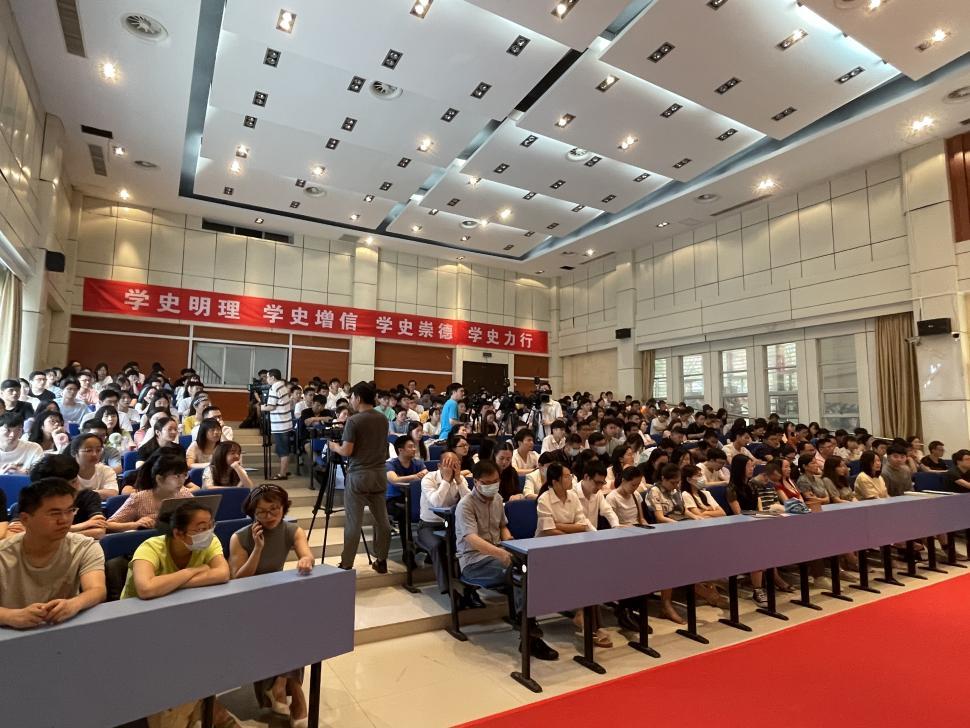 我校校友、省委党史研究室副主任彭勃以《树立正确党史观,反对历史虚无主义》为主题从如何树立正确的党史观、如何反对历史虚无主义两个方面展开课程。她强调,树立正确党史观,有利于正确地认识中国实际,厚植爱国主义情怀,培养艰苦奋斗精神。她鼓励师生要坚定马克思主义信仰,围绕中国共产党为什么能,马克思主义为什么行,中国特色社会主义为什么好重大问题,广泛开展学习和思考,进一步激发爱党、爱国、爱社会主义的巨大热情,主动投身于中华民族伟大复兴的历史伟业。