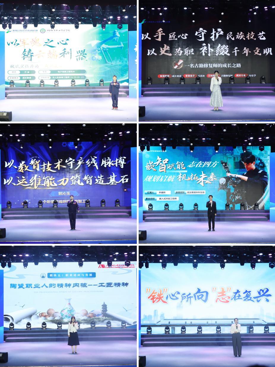 为加强比赛成果的共享,仪式进行了职教组和高教组成长赛道、就业赛道、课程教学赛道优秀作品展示,选手们用精彩的案例展示了成长与就业的规划蓝图。与会领导分别为各赛道金奖获得者颁奖,并为南昌大学、江西理工大学等10所高校颁发优秀组织奖。