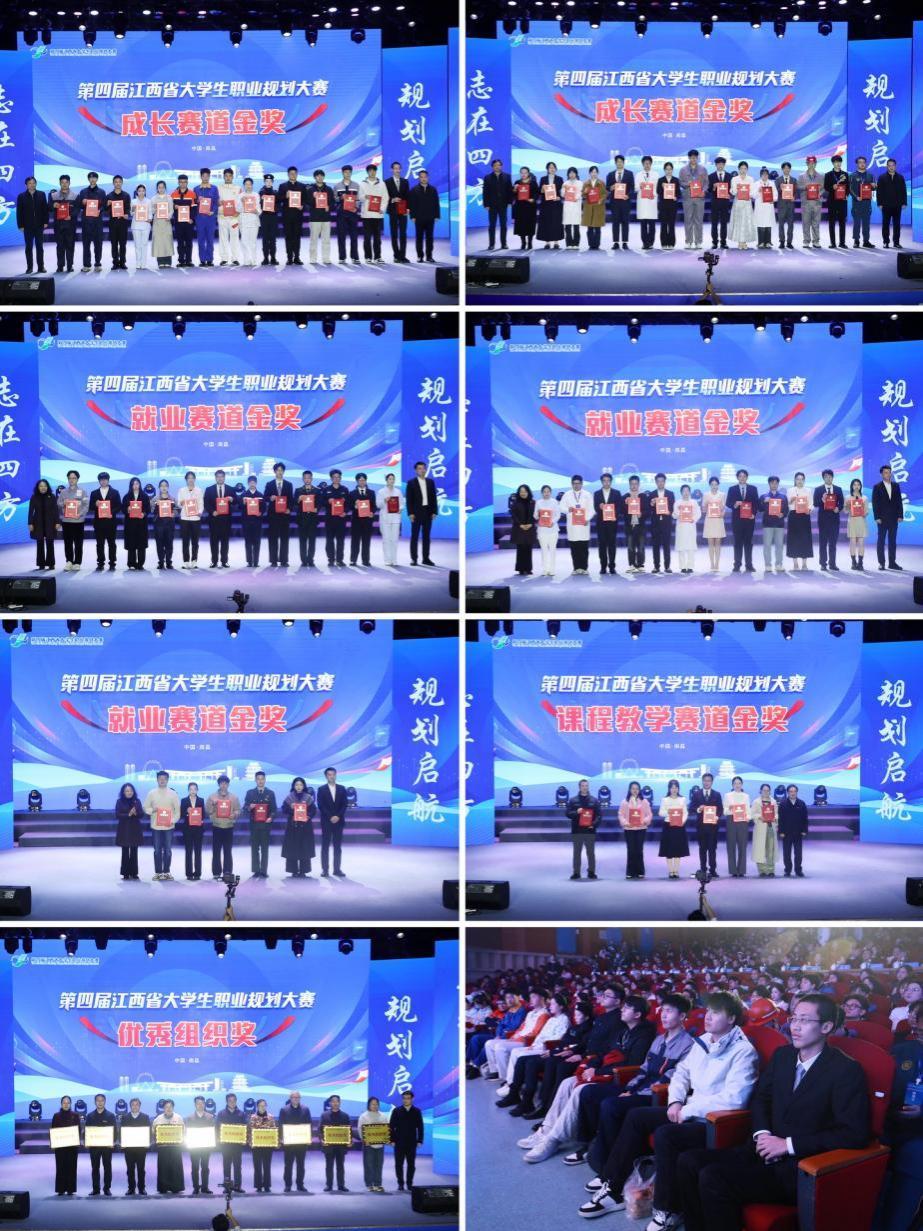 第四届江西省大学生职业规划大赛以“筑梦青春志在四方,规划启航职引未来”为主题,历经校赛初赛、省赛决赛等环节,共吸引全省111所高校的86万余名师生参赛,最终389名学生进入省赛学生赛道决赛。经过3月7-8日两天的激烈角逐,最终产生金奖59个、银奖134个、铜奖190个。前期举行的课程教学赛道决赛产生金奖6个、银奖14个、铜奖20个。本届大赛南昌大学共有12000余名师生参加比赛,共9名选手进入决赛,取得6金1银2铜并获评优秀组织奖。